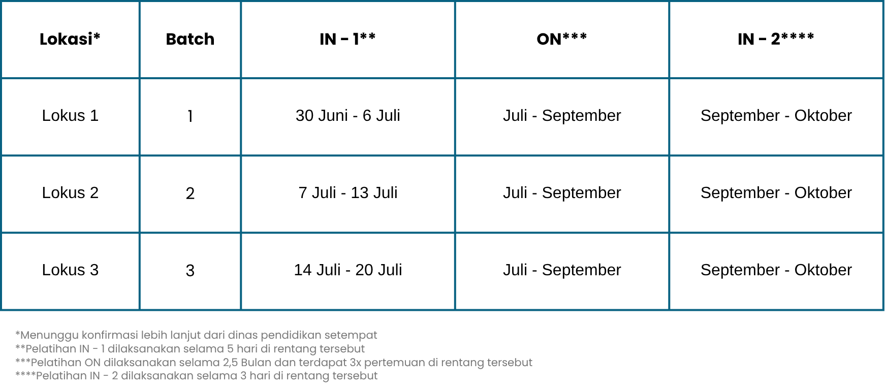 Jadwal Pelatihan dan Lokus dapat dilihat pada tabel berikut: